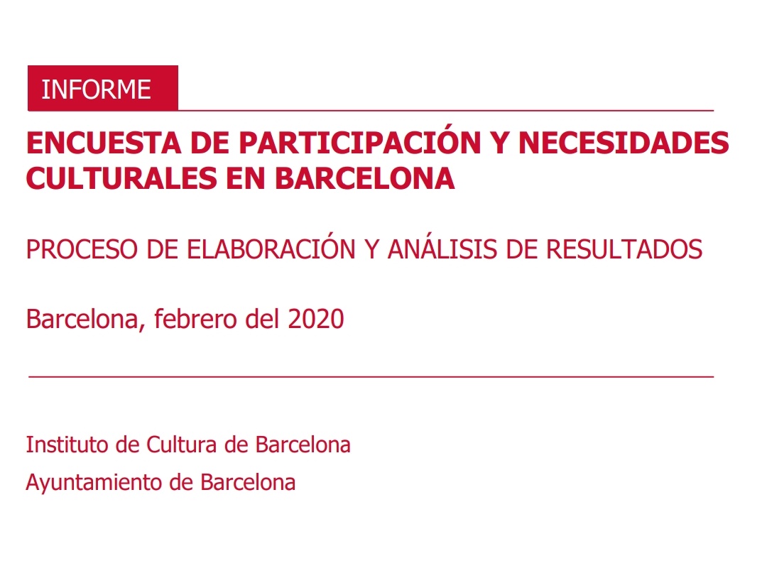 Ya está publicada la versión en castellano de la primera Encuesta de participación y necesidades culturales de Barcelona. He tenido la oportunidad de formar parte del equipo que ha impulsado este trabajo, conjuntamente con Montse Tort y Assumpta Manils del Observatorio de datos culturales de Barcelona (Ayuntamiento de Barcelona).
